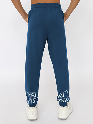 Брюки с притачным поясом и манжетами. Пояс из основного полотна и эластичной резинкой внутри. Низ брюк с притачными манжетами из полотна с добавлением лайкры. Задняя часть декорирована принтом "Реальный".