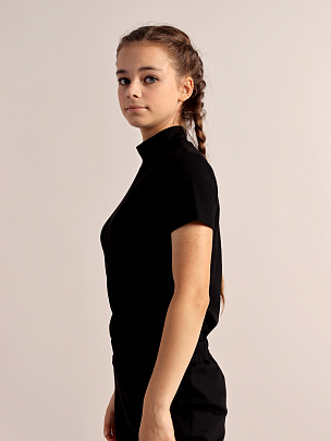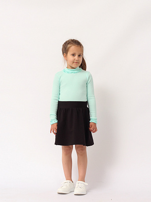 Водолазка из кашкорсе с эластаном. Модель с длинными рукавами и воротником-стойкой. По шву притачивания воротника и шву подшивки низа рукава эластичной строчкой настрочены рюши из основного полотна. Края рюши обработаны микрооверлоком.