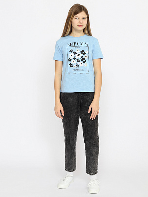 OVERSIZE футболка для девочки с короткими рукавами и удлиненной спинкой.В нижней части боковых швов обработаны разрезы. Перед футболки декорированы принтом.