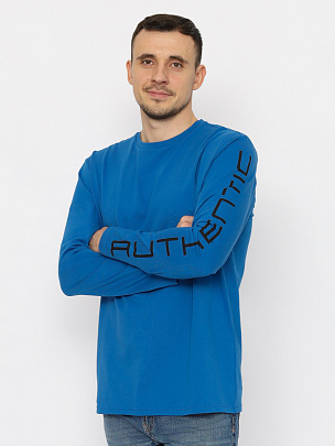 Футболка с длинным рукавом, мужская. Горловина обработана обтачкой из рибаны с лайкрой. По ростку проложен усилитель из экстрафорной ленты. На полочке выполнена шелкография мягкими красками.